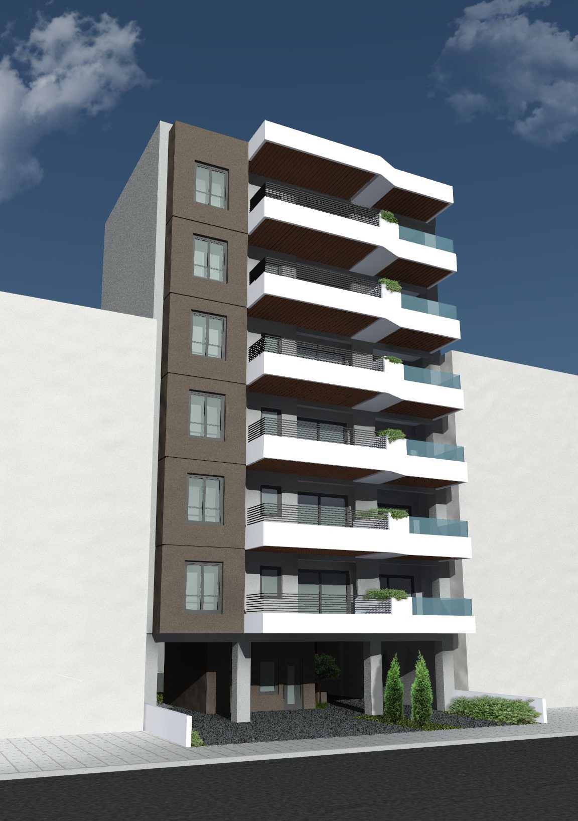 Εξαώροφη οικοδομή που θα ανεγερθεί με το σύστημα της αντιπαροχής. Στην εταιρία ανήκουν ο 4ος και 5ος και 6ος όροφος. Σε κάθε όροφο υπάρχει μια γκαρσονιέρα και ένα δυάρι διαμέρισμα. Υπάρχει δυνατότητα συνένωσης των διαμερισμάτων αυτών οπότε προκύπτει οροφοδιαμέρισμα.